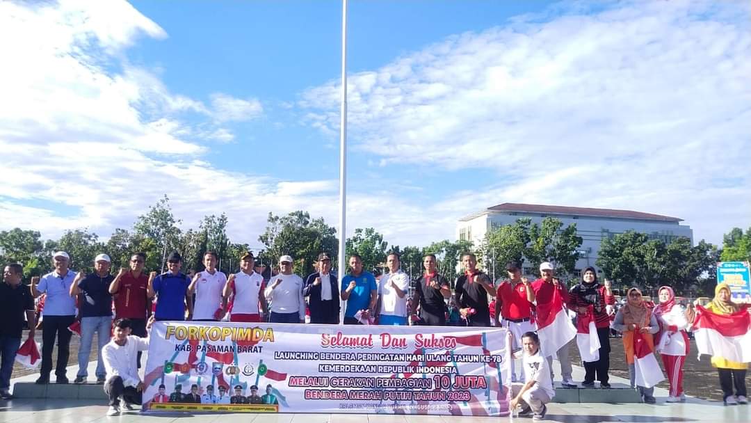 PASAMAN BARAT – Pemerintah Kabupaten Pasaman Barat (Pasbar) Launching Bendera Peringatan Hari Ulang Tahun (HUT) Ke-78 Kemerdekaan Republik Indonesia (RI) melalui Gerakan Pembagian 10 Juta Bendera Merah Putih Tahun 2023.