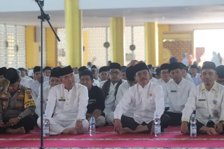 Acara tabligh akbar ini dihadiri oleh Pimpinan DPRD Kabupaten Dharmasraya, Sujito bersama Sekretaris Daerah Adlisman, Forkopimda, instansi vertikal, OPD, serta tamu undangan lainnya.