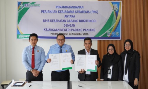“Penandatanganan perjanjian kerjasama antara BPJS Kesehatan dan Kejaksaan Negeri Padang Panjang hari ini memiliki makna strategis dalam memperkuat kolaborasi antarlembaga negara.”