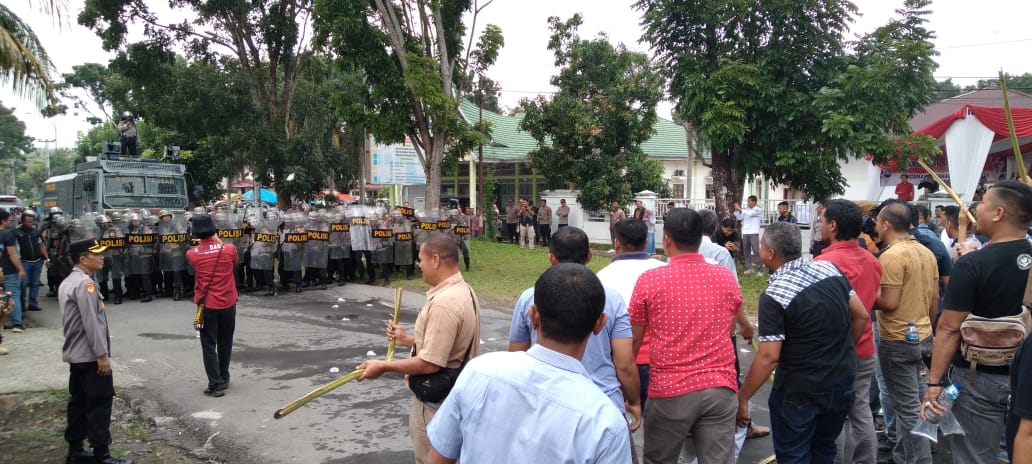 PASAMAN BARAT – Ratusan massa menyerang Kantor Komisi Pemilihan Umum (KPU) Kabupaten Pasaman Barat, terkait penolakan hasil penghitungan suara dan melakukan protes terkait adanya pemilih yang tidak dapat menggunakan hak suara di Tempat Pemungutan Suara (TPS).