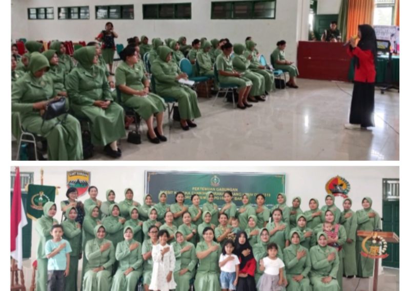 Kegiatan Pertemuan Gabungan kali ini dengan Tema Sosialisasi serta Pembekalam Istri Anggota Yang Usia Pernikahan 0 – 5 Tahun dan pertemuan gabungan ini juga untuk menjaga silaturahmi, komunikasi dan kekompakan antar anggota agar lebih solid serta memahami tupoksinya sebagai anggota persit.