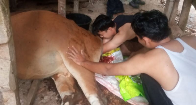 Sejak selasa malam sapi sudah mengeluarkan tanda tanda mau melahirkan sekitar pukul 22.00 Wib petugas memberitahu dan datang dan awalnya membantu induk sapi tersebut hingga anaknya lahir pada hari rabu, sejak itu induk sapi tersebut tidak mau makan dan akhirnya kamis siang induk sapi tersebut kian melemah hingga mati.