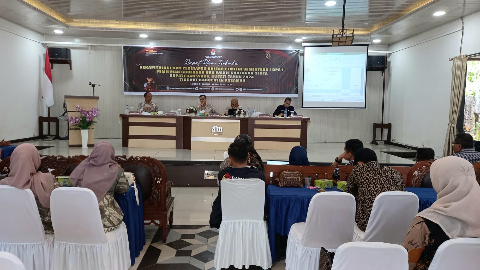 Minangkabaunews.com – Komisi Pemilihan Umum (KPU) Kabupaten Pasaman, menggelar rapat pleno terbuka rekapitulasi dan penetapan Daftar Pemilih Sementara (DPS) tingkat Kabupaten Pasaman, untuk pemilihan Gubernur dan Wakil Gubernur Sumatera Barat, serta Bupati dan Wakil Bupati Pasaman tahun 2024.