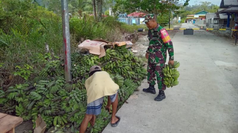 MINANGKABAUNEWS.COM, MENTAWAI – Peduli dengan peningkatan ekonomi, Babinsa Koramil 02 Muara Siberut Serda Hermanto turun melaksanakan kegiatan Komunikasi Sosial (Komsos) dengan membantu warga pengepul pisang di Desa Maillepet Siberut Selatan Kabupaten Kepulauan Mentawai Sumatera Barat.