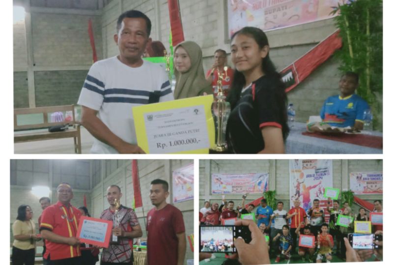 Berikut pemenang dalam Turnament Badminton Bupati Cup 2024, yakni pemain ganda putra Juara I pasangan Julmadin – Ajo Anto, Juara II Pasangan Muliadi -Rafi dan Juara III dimenangkan pasangan Beni Hulu – Beni Saogo.