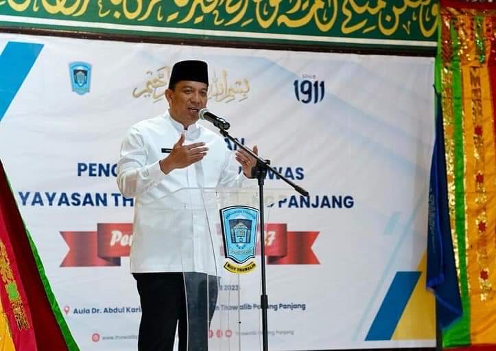 Penjabat (Pj) Wali Kota, Sonny Budaya Putra, AP, M.Si menyampaikan selamat atas dilantiknya Pengurus dan Pengawas Yayasan Thawalib Padang Panjang. Dalam beberapa tahun, katanya, Thawalib menunjukkan geliat yang positif. Hal ini lantaran pengurus, pengawas, pembina maupun alumni Thawalib diisi tokoh-tokoh hebat yang berkiprah di nasional.