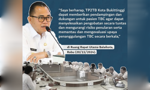 Untuk pencepatan penanggulangannya secara terorganisir dan sinergis, Penjabat sementara (Pjs) Wali Kota Bukittinggi, H.Hani Syopiar Rustam, telah menerbitkan SK Wali Kota No.188.45-217-2024 tentang Tim Percepatan Penanggulangan Tuberkulosis Tingkat Kota Bukittinggi.
