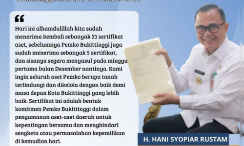 “Kami ingin seluruh aset pemko berupa tanah terlindungi dan dikelola dengan baik demi masa depan Kota Bukittinggi yang lebih baik,” kata Hani .