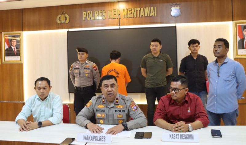 Kapolres Kepulauan Mentawai, AKBP Rory Ratno A., S.E., M.M., M.Tr.Opsla, melalui Wakapolres Kep. Mentawai, Kompol Bustanul Alamsyah, S.Sos., M.H, menyatakan bahwa tersangka ditangkap karena diduga melakukan tindak pidana judi online dengan menjual chip High Game Island (HGI) kepada pemain.