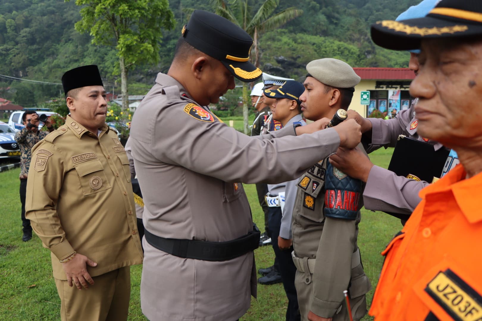 Wali Kota Padang Panjang, H.Hendri Arnis, BSBA bertindak sebagai pimpinan apel yang di dampingi oleh Kapolres Padang Panjang AKBP Kartysna Widyarso WP, S.I.K.,M.AP sekaligus membacakan amanat dari Kapolri, Jenderal Polisi Listyo Sigit Prabowo.