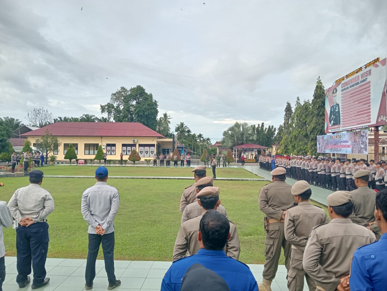 PASAMAN BARAT – Kepolisian Resor (Polres) Pasaman Barat, Sumatera Barat (Sumbar), menggelar Apel Kesiapan dalam rangka Tanggap Darurat Bencana tahun 2025, yang dilaksanakan di halaman Mako Polres setempat, Rabu (5/11/2025).