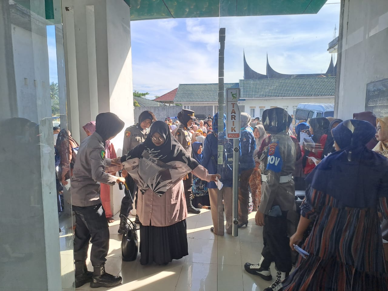 Diterangkan, petugas keamanan melakukan pengawasan dan pengaman secara ketat, serta melakukan pemeriksaan terhadap 410 petugas dengan mengunakan metal detektor sebelum memasuki gedung Balerong Pusako Anak Nagari.