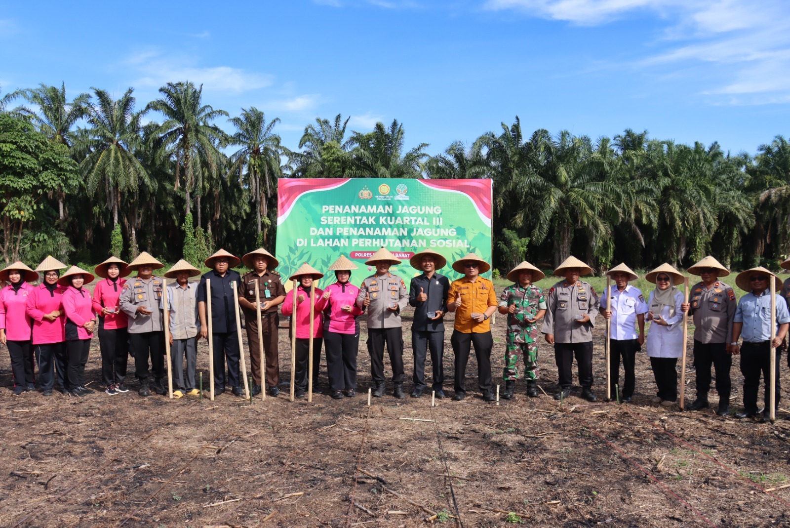PASAMAN BARAT – Kepolisian Resor (Polres) Pasaman Barat, Sumatera Barat (Sumbar), mengikuti zoom meeting Penanaman Jagung Serentak Kuartal III dan Penanaman Jagung di Lahan Perhutanan Sosial, yang dilaksanakan di Jorong Kampung Cubadak Nagari Lingkuang Aua Timur, Kecamatan Pasaman, Rabu (9/7/2025).