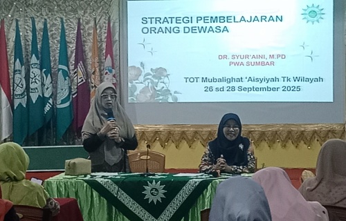 Inilah yang digaungkan Dr. Syuraini, M.Pd, Ketua Pimpinan Wilayah ‘Aisyiyah Sumatera Barat, dalam sesi Hari Kedua kedua Training of Trainers (TOT) Mubalighat tingkat wilayah di Aula PW ‘Aisyiyah Sumbar, Sabtu (27/9). Pelatihan tiga hari ini berlangsung 26-28 September 2025.