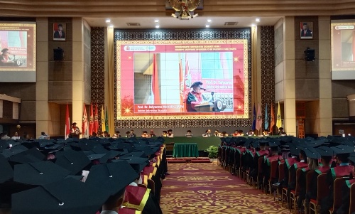 Pada acara itu, Rektor menyampaikan ucapan selamat kepada para orang tua atau wali alumni atas keberhasilannya menuntaskan salah satu kewajibanya sebagai orang tua memberikan pendidikan yang baik kepada anak – anaknya.