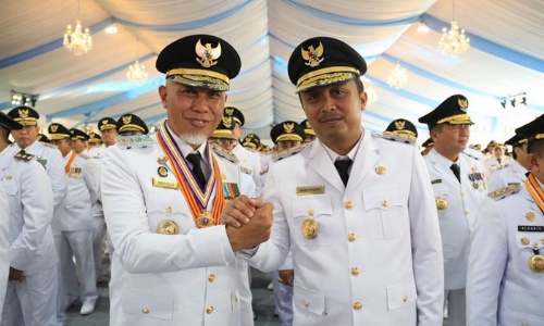 MINANGKABAUNEWS.com, PARIWARA PEMPROV SUMBAR — Mahyeldi Ansharullah dan Vasko Ruseimy resmi dilantik Presiden Prabowo Subianto sebagai Gubernur dan Wakil Gubernur (Wagub) Sumatera Barat (Sumbar) periode 2025-2030, melalui prosesi pelantikan di Istana Kepresidenan RI, Kamis (20/02/2025). Keduanya berkomitmen akan langsung bergerak cepat membangun Sumbar, serta menyelaraskan program kerja dengan visi-misi pemerintah pusat.