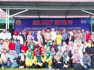Apalagi reuni SMPN 1 Bukit Sundi ini juga dihadiri oleh Bupati Solok Jon Firman Pandu, sehingga suasana keakraban makin kental terlihat diantara para reunian tersebut.