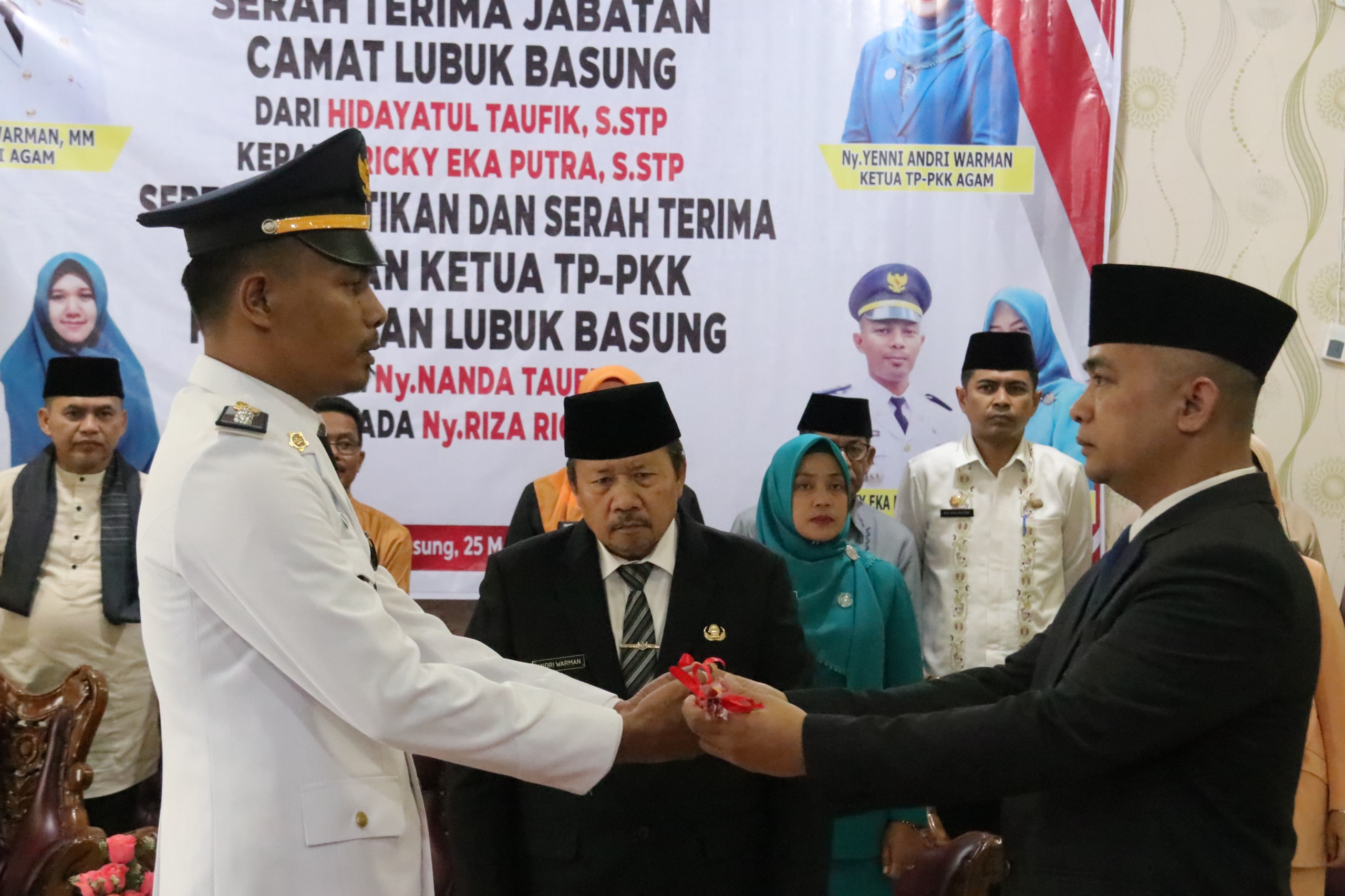 Nasrial Dt.Asalabiah dalam Sertijab Camat Lubuk Basung menyampaikan bahwa Ricky Eka Putra putra asli Lubuk Basung dan kini diamanahkan untuk memimpin daerah asalnya.