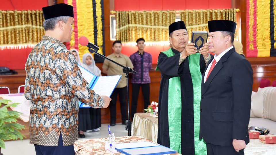 “Bapak Mursalim, telah melakukan sumpah jabatan yang merupakan ikrar kesanggupan mentaati segala peraturan yang berlaku dalam mengemban tugas dan kewenangan jabatanya, oleh karena itu dalam melaksanakan tugas Pj Sekda yang baru, harus memegang teguh sumpah jabatan tersebut,” ungkapnya.