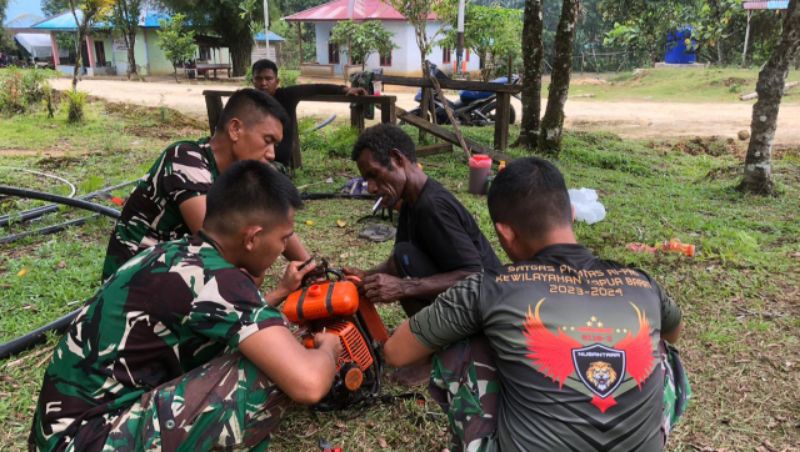 Sebagaimana yang di lakukan Satgas Pamtas Kewilayahan Yonif 133/YS Pos Buohsa saat memberikan bantuan perbaikan mesin rumput yang rusak di kampung Buohsa Distrik Aifat Selatan, Kabupaten Maybrat, Provinsi Papua Barat Daya.