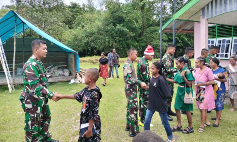 Merayakan natal bersama warga dapat mempererat kebersamaan. Personil satgas Pamtas Kewilayahan Yonif 133/YS merasa senang bisa hadir di tengah-tengah masyarakat dalam merayakan natal, ujar Danpos Buohsa Kapten Inf Rimson Silalahi. Selasa (26/12/2023).