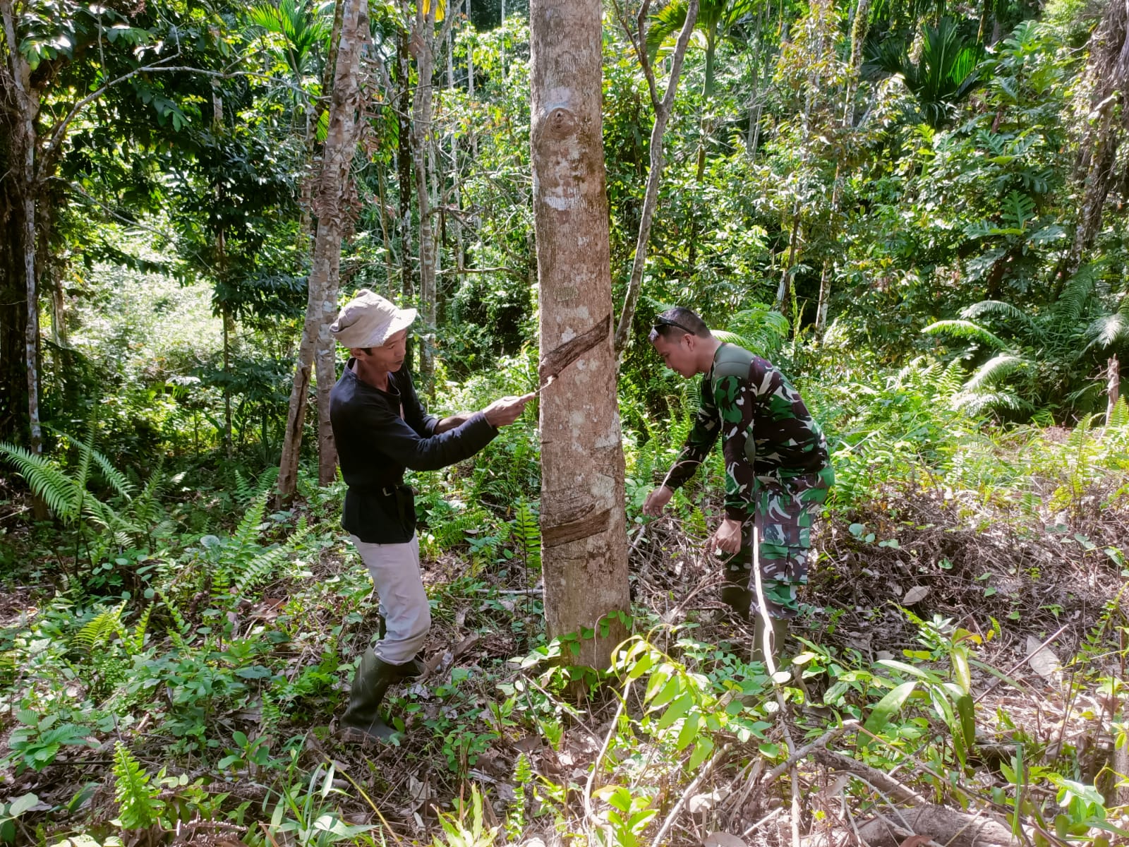 Selain Itu, juga menyampaikan banyak terima kasih atas bantuan bapak TNI yang telah meluangkan waktu untuk membantu mentoreh karet.