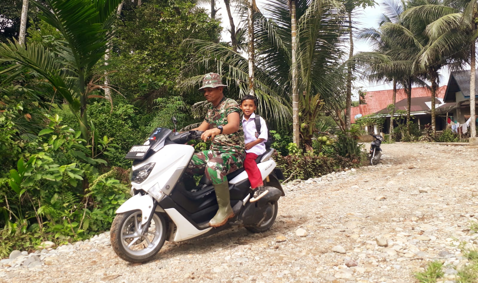 Kepedulian terhadap dunia pendidikan membuat anggota satgas TMMD rela membagi waktunya untuk mengantar salah seorang murid pulang dari sekolah pada hari Kamis (25/07/2024).