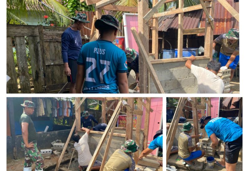 Pembangunan MCK dirumah bapak Zulfahmi di Dusun Bukit Subur Desa Bukit Pamewa Sudah Capai 70 Persen dengan dibantu masyarakat Kampung personel Satuan Tugas (Satgas) TNI Manunggal Membangun Desa (TMMD) ke-123 Kodim 0319/Mentawai yang dipimpin oleh Serda Iqbal.