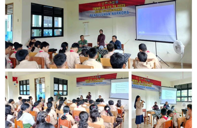 MINANGKABAUNEWS.COM, MENTAWAI – Peduli masa depan generasi penerus bangsa Indonesia, Satgas TMMD 123 Kodim 0319/Mentawai memberikan penyuluhan bahaya narkoba di SMP Santo Petrus, Kamis (06/03/2025).