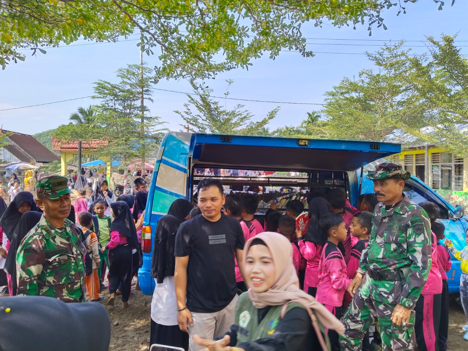 PESISIR SELATAN — Anggota Satgas TMMD menghadiri kegiatan Layanan Literasi anak melalui perpustakaan keliling bersama yang dilaksanakan di SDN 18 Lagan Gadang Mudik.