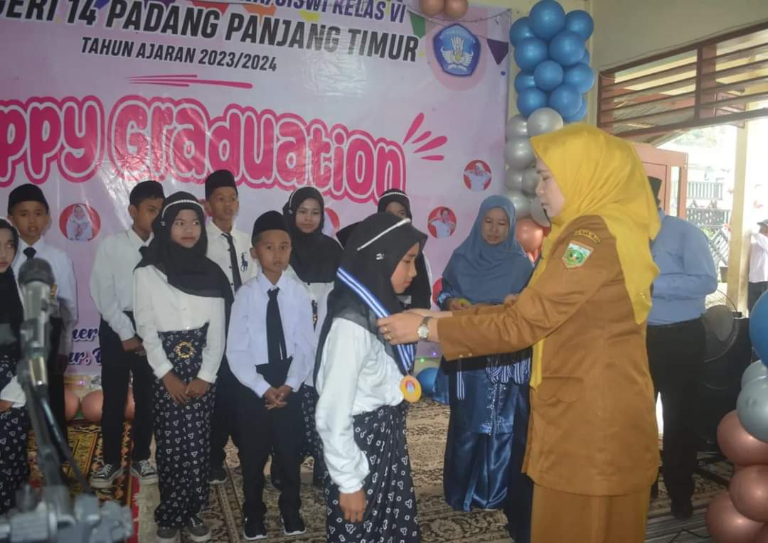 “Selamat kepada anak- anak kami atas kelulusannya. Selamat melanjutkan ke pendidikan yang lebih tinggi. Terus tingkatkan prestasimu, tidak hanya akademik saja, namun nonakademik juga. Buat pihak sekolah, teruslah berinovasi agar SD N 14 PPT ini semakin maju ke depannya,” pesan Nofiyanti.