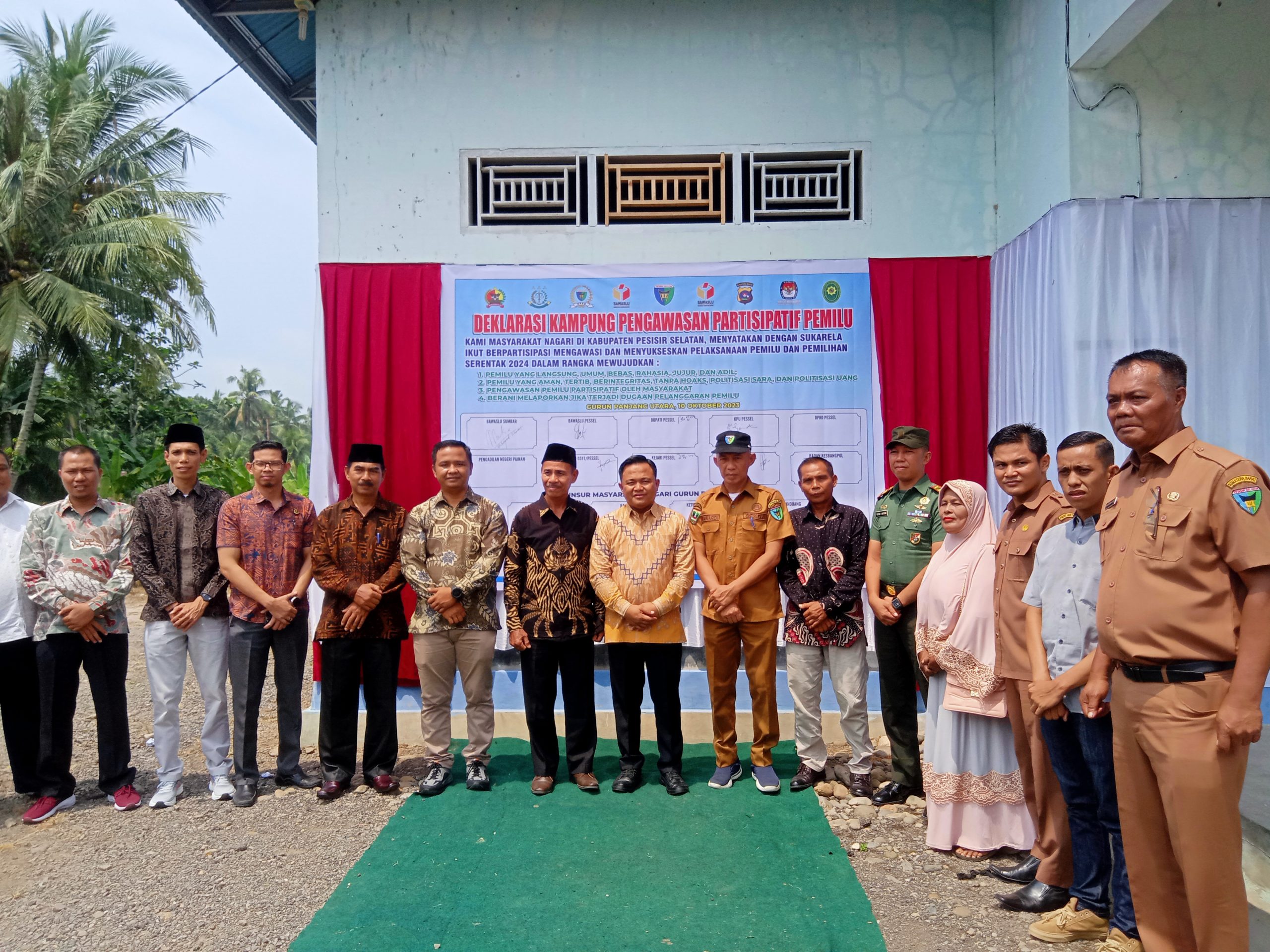 Pesisir Selatan – Bupati Pesisir Selatan (Pessel), Rusma Yul anwar, dengan diwakili Sekretaris Kabupaten (Sekkab) Pessel, Mawardi Roska, hadiri Deklarasi Kampung Pengawasan Partisipatif Pemilu Tahun 2024.