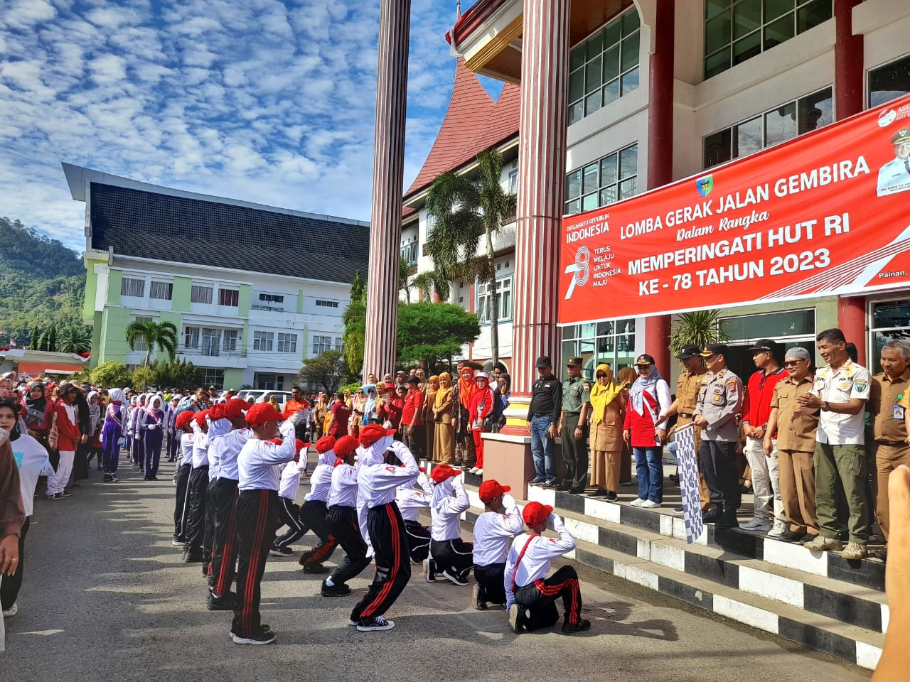 Perlombaan gerak jalan gembira yang saat ini kita selenggarakan merupakan salah satu rangkaian dari peringatan HUT RI ke-78 di Kabupaten Pesisir Selatan.