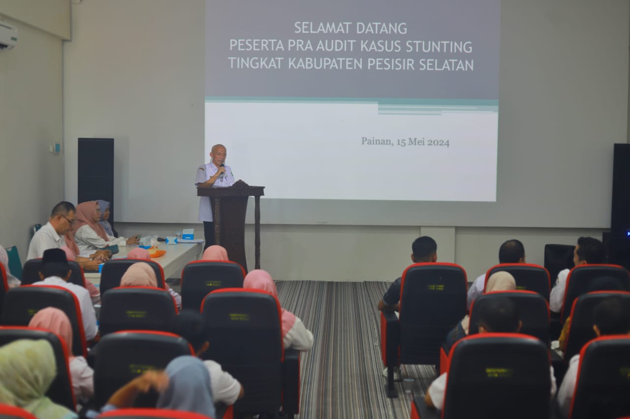 Pesisir Selatan -Sekretaris Daerah Kabupaten Pesisir Selatan, Mawardi Roska membuka acara Pra Audit Kasus Stunting di Studio Mini Dinas Perpustakaan dan Arsip Kabupaten Pesisir Selatan, Rabu (15/5).