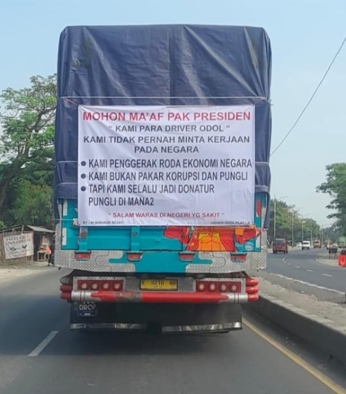 “MOHON MAAF PAK PRESIDEN, KAMI PARA DRIVER ODOL TIDAK PERNAH MINTA KERJAAN PADA NEGARA. KAMI PENGGERAK RODA EKONOMI NEGARA. KAMI BUKAN PAKAR KORUPSI DAN PUNGLI, TAPI KAMI SELALU JADI DONATUR PUNGLI DI MANA-MANA.