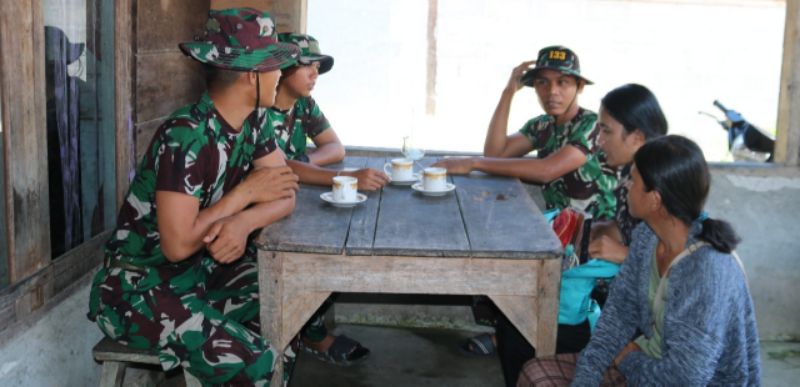 Sembari istirahat makan siang dalam pekerjaan fisik, seperti pembukaan jalan, pembangunan MCK dan Penampungan Air, personel TMMD selalu meluangkan waktu untuk berinteraksi dengan masyarakat dilokasi TMMD.
