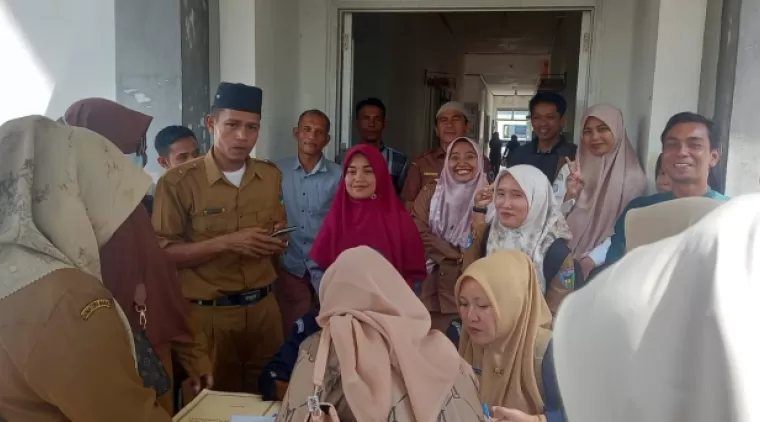 “Alhamdulillah hari ini kami seluruh petugas hadir ke kantor camat sutera untuk menerima honor sebagai petugas pemutakhiran data pemilih”, ucapnya.