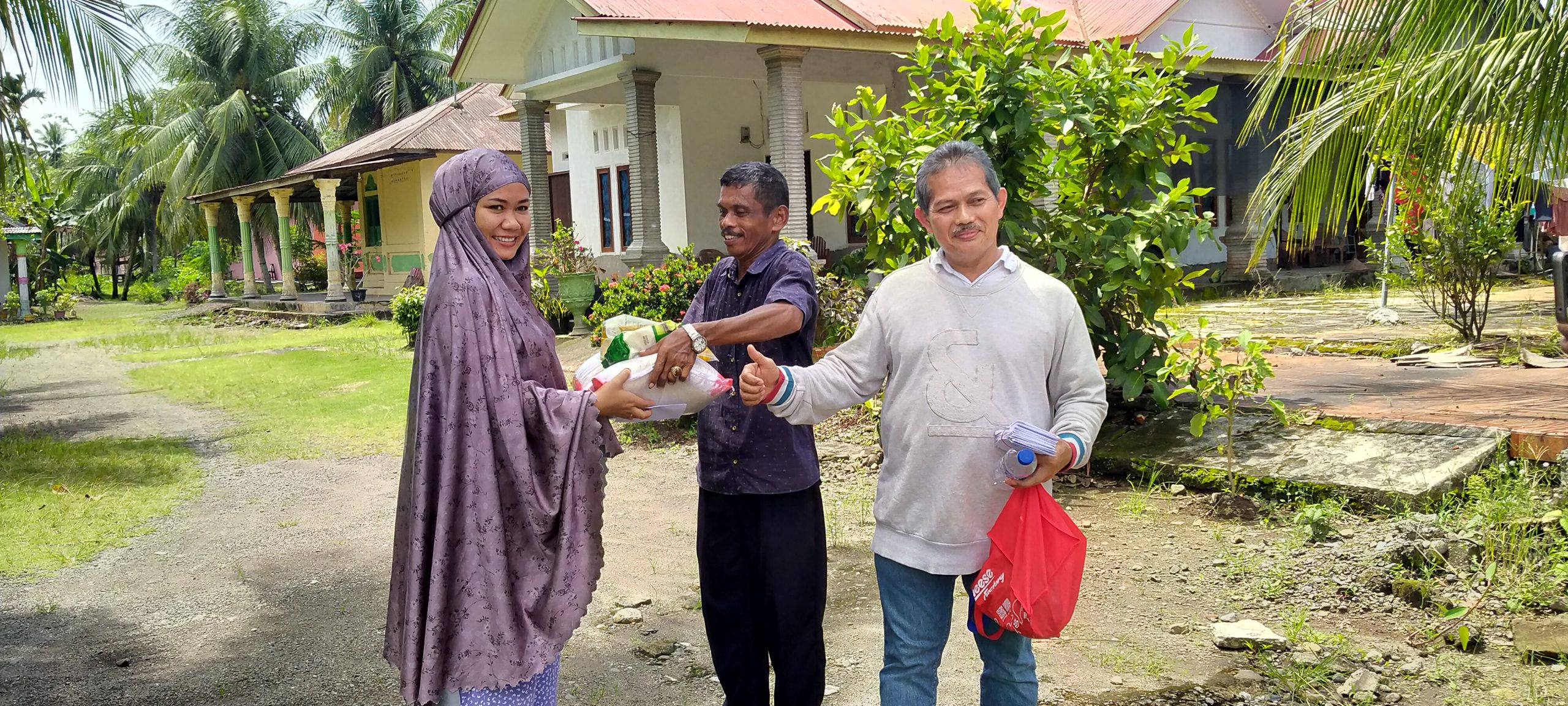 Pengusaha emas yang sukses di rantau ini, Jumat 21 Februari 2025 membagikan 250 paket, untuk 250 rumah yang ada di korong itu.