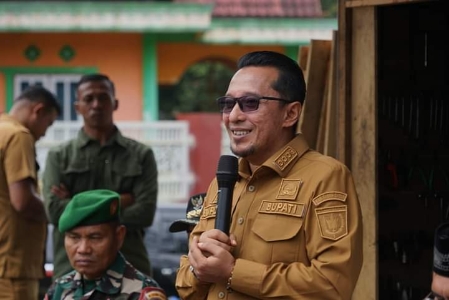 Bupati Eka Putra menyampaikan ucapan dan ungkapan turut berduka cita atas musibah yang menimpa beberapa waktu lalu, dan mohon maaf baru berkunjung dan menyerahkan bantuan hari ini.