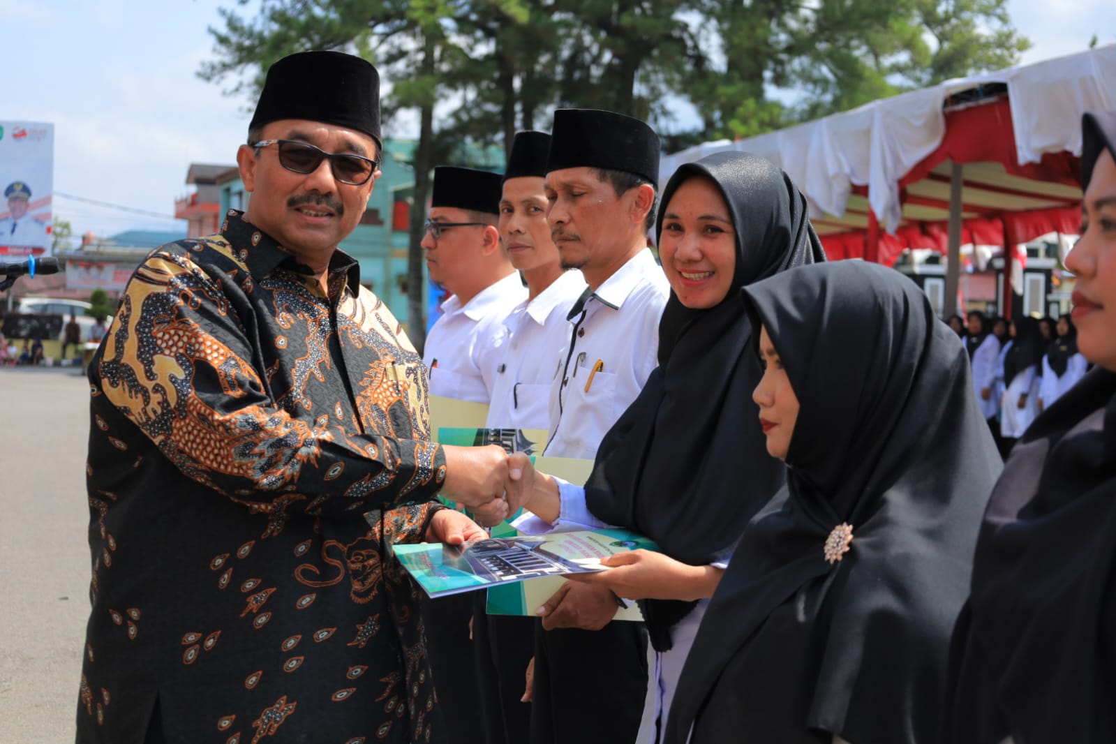 Selain itu juga diserahkan secara simbolis SK oleh Bupati Pasaman H.Benny Utama kepada perwakilan diantaranya Badria Zulmadi, S.Pd.SD, Devi Manputra. S.Pd, Dewi Marni.S.Pd, Ella Astia.S.Pd.I. (Verdi)