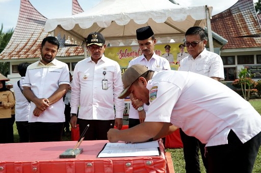 Dalam kegiatan ini juga dilakukan penandatanganan berita acara Penelusuran Data Masyarakat Miskin Ekstrem Nagari oleh para verifikator data sosial nagari yang disaksikan oleh Bupayi dan jajarannya.