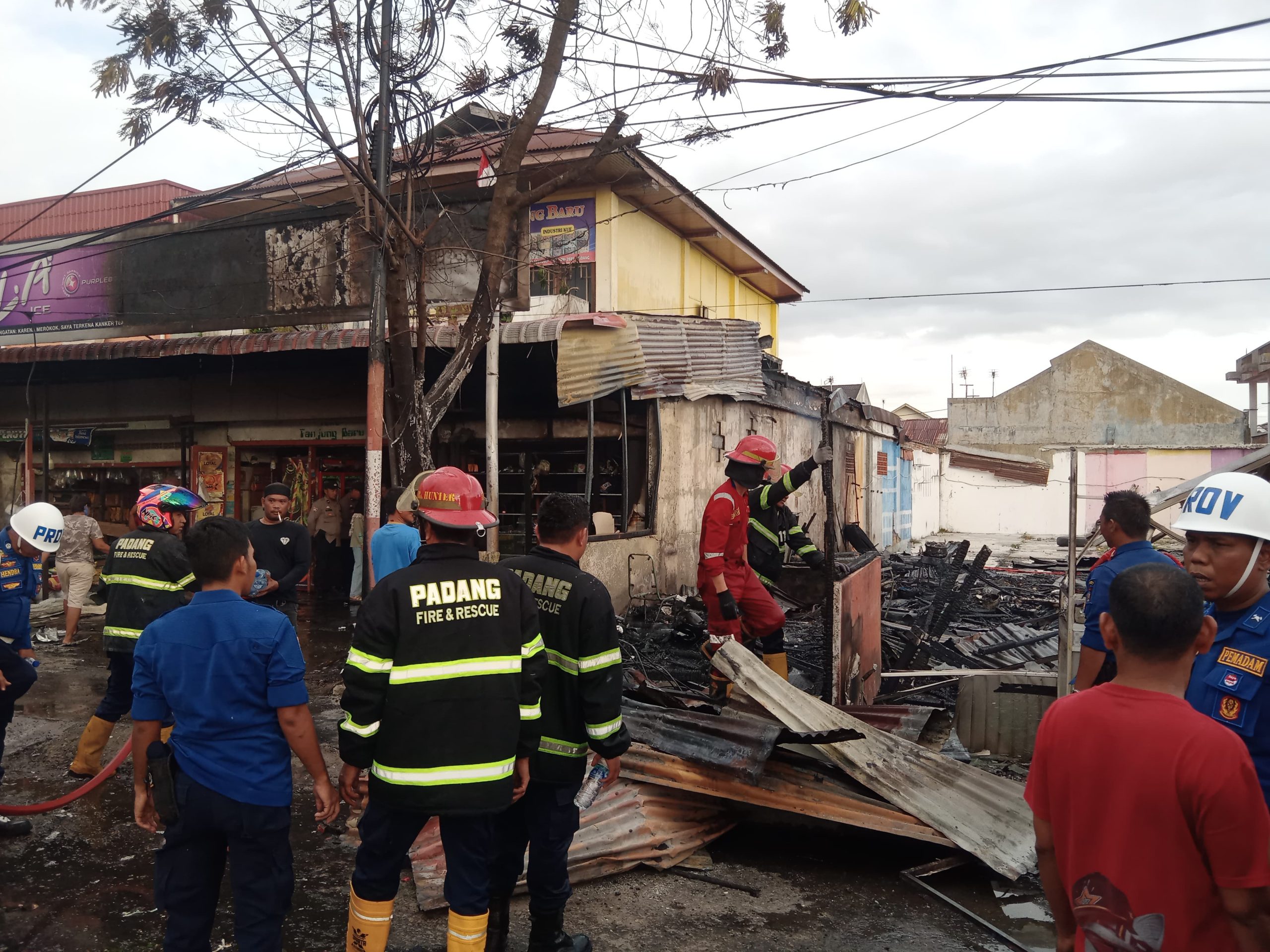 “Peristiwa ini menyebab kan 1 ruko terbakar sebahagian bangunanya dan 4 unit kios petak habis dilahap sijago merah.