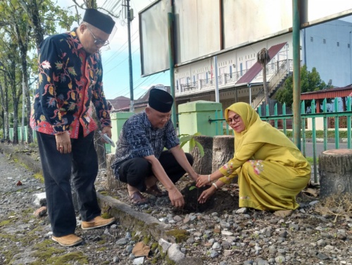 Untung sore menjelang senja itu, Ketua STIT Syekh Burhanuddin Neni Triana belum pulang. Sehingga bibit buah-buahan yang diturunkan dari mobil bisa pula ditanam langsung sebagiannya di depan kampus yang menjunjung tinggi nama besar Syekh Burhanuddin tersebut.