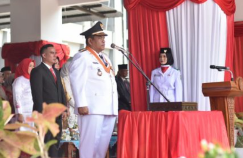 Upacara berjalan dengan lancar dan khidmat yang dilangsungkan di halaman Kantor Bupati di Kawasan IKK Parit Malintang, Sabtu, 17 Agustus 2024.