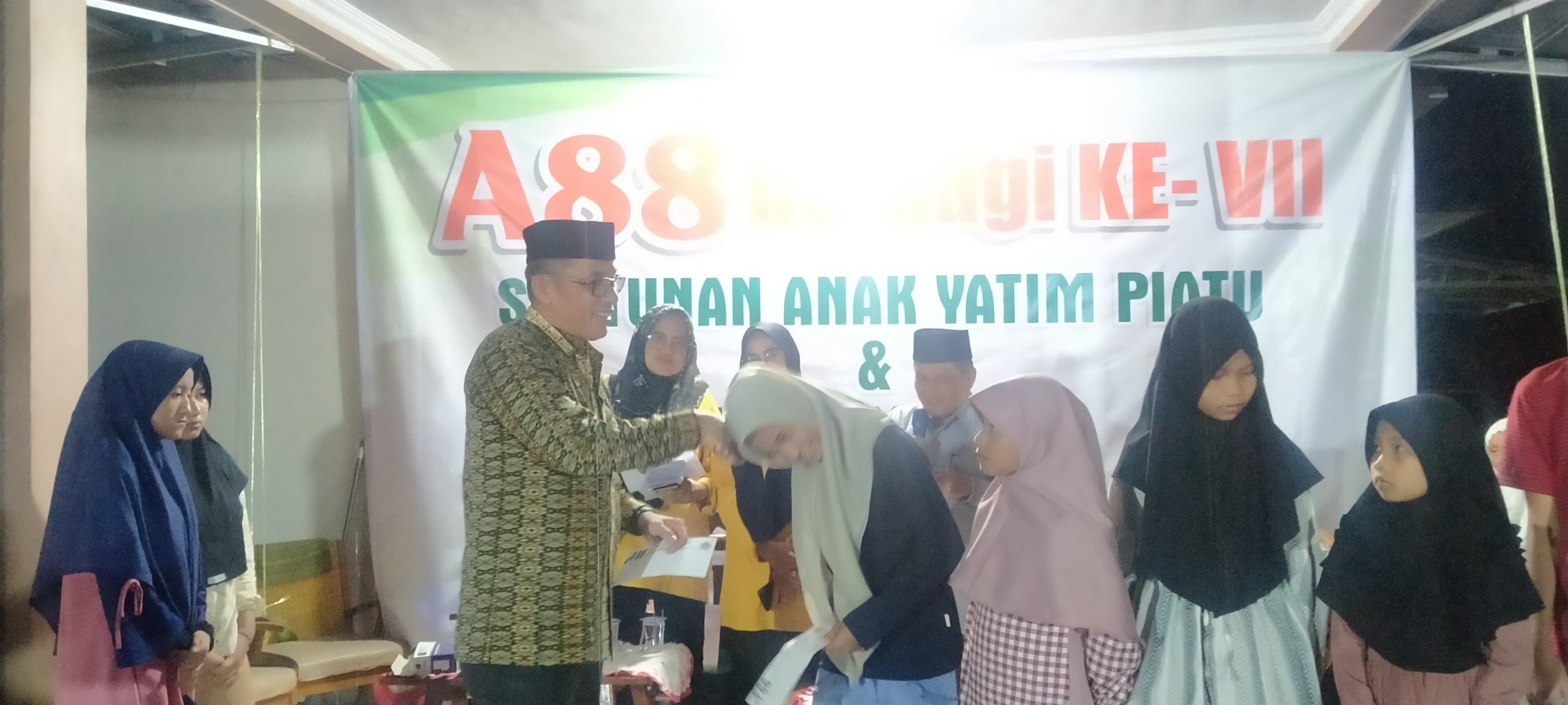 “A88 Berbagi ke-VII”. Ini judulnya kegiatan yang diadakan di rumah orang tua Ketua Harian A88 Hendri Gusvira, di Pasar Sungai Sariak itu.