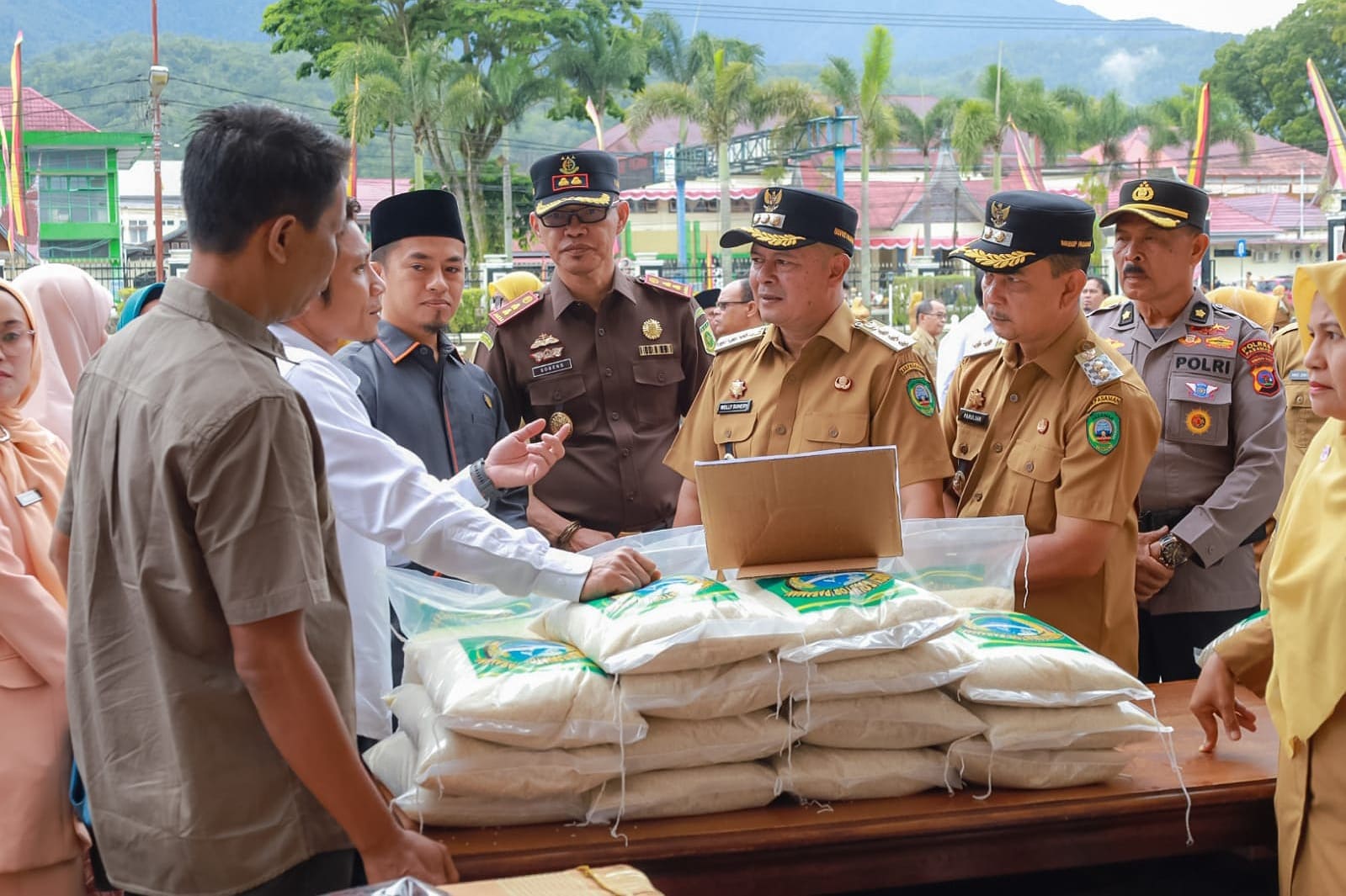 Kepala dinas Pangan Provinsi Sumatera barat, Pimpinan Bulog wilayah Sumatera Barat dan pimpinan Bulog Cabang Bukittinggi dan rombongan, Pj Sekda Pasaman, Staf ahli, asisten, kepala OPD dilingkungan pemerintah Kabupaten Pasaman.
