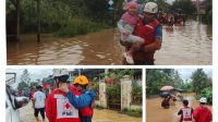 Hadang Derasnya Banjir, Relawan PMI Evakuasi Warga yang Terjebak Di Rumah