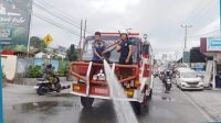 Damkar Kota Padang Panjang Bersihkan Abu Vulkanik Marapi di Jalanan