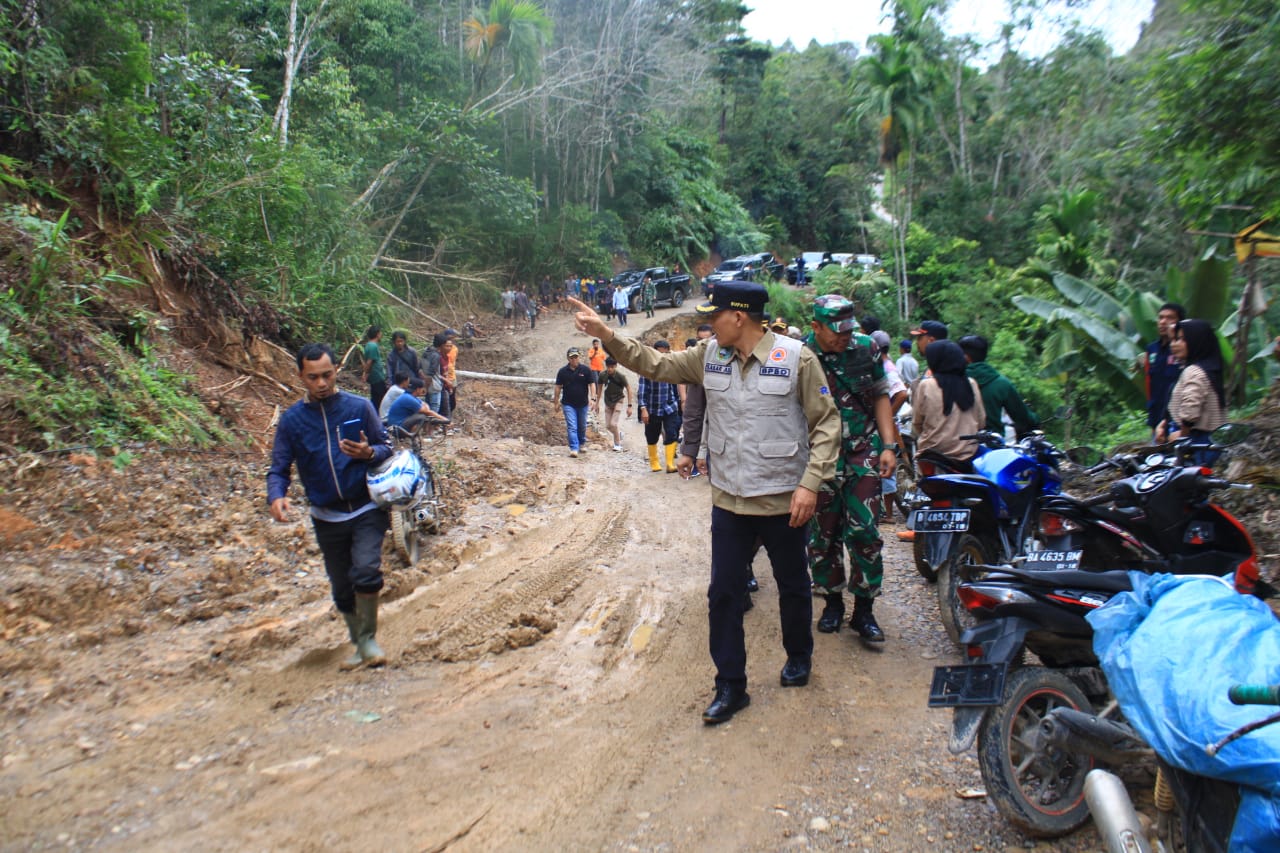 Bupati Sabar saat dilokasi bencana didampingi Kapolres Pasaman, Dandim 0305 Pasaman, Kajari, Forkopimda, OPD, Camat dan Walinagari.