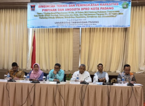 Bimtek peningkatan kapasitas DPRD Kota Padang ini menggandeng Universitas Taman Siswa Padang melalui Lembaga Penelitian dan Pengabdian Kepada Masyarakat (LPPM) dengan penyelenggaraan Bimbingan Teknis.